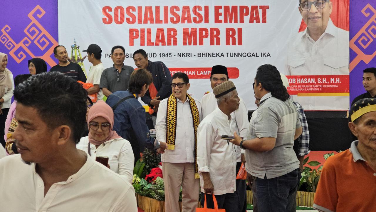 NusantaraUpdate.com, Lampung Tengah — Ketua Badan Legislasi (Baleg) DPR RI, Bob Hasan, hadir langsung dalam kegiatan Sosialisasi Daerah Pemilihan (SOSDAPIL) / 4 Pilar Tahap VII yang digelar di Bandar Jaya, Kabupaten Lampung Tengah, Provinsi Lampung.